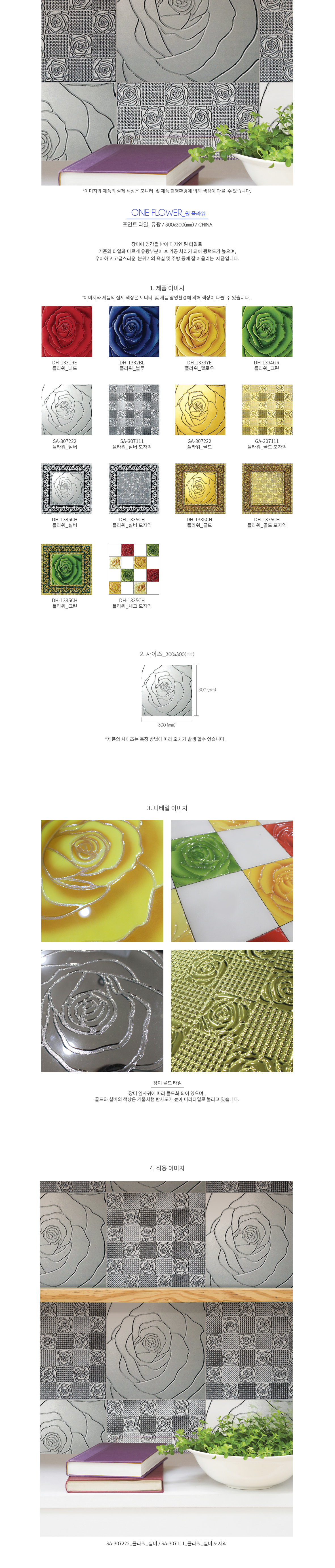 종류 및 색상: DH-1331_플라워_레드 / DH-1332_플라워_블루 / DH-1333_플라워_옐로우 / DH-1334_플라워_그린