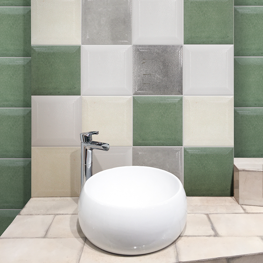 특징: 빛에 의해 유광처럼 반짝거림이 느껴지는 타일입니다.